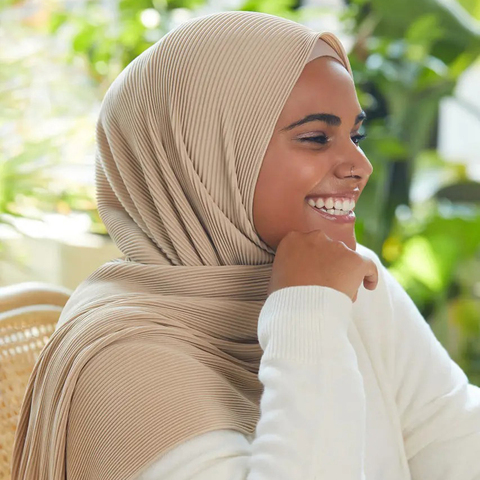 Üçgen şeklinde pilili eşarp müslüman pilili Premium saten hicap kadınlar için