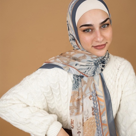 Lenço Hijab Modal para Mulheres Muçulmanas Lenço Hijab Modal Tr de Algodão estampado