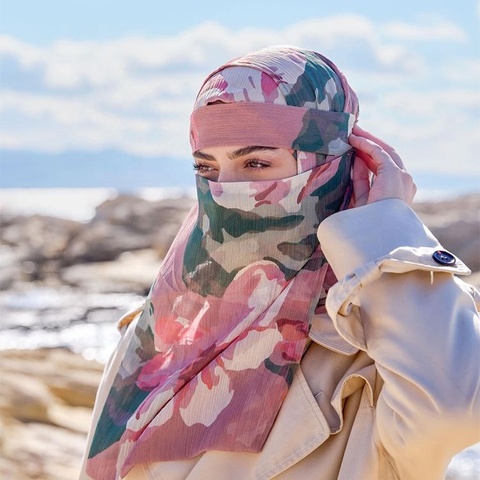 Mulheres Niqab Com Design Personalizado Impresso Lenço Amassado Chiffon Niqab Muçulmano