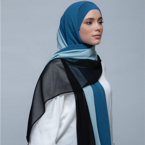 FreeStyle 3 Cor Combinação Cor Personalizado Premium Chiffon Hijab Muçulmano Elegante Lenço Macio