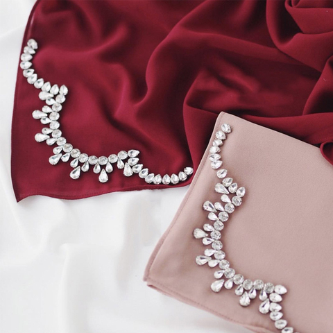 Bán Buôn Tuỳ Chỉnh Đồng Bằng Dài Phong Cách Sang Trọng Malaysia Hồi Giáo Top Grade Voan Hijab Với Kim Cương