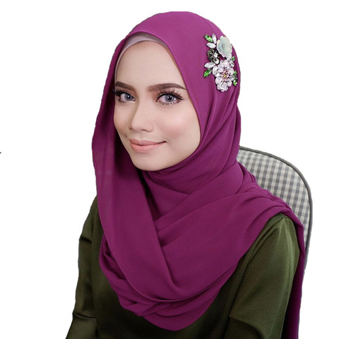 투둥 히잡 쉬폰 숄 이슬람 스카프 진주와 비즈 말레이시아 쉬폰 히잡 숄 스카프