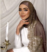 Scialle Hijab in raso di seta di lusso con decorazioni in pizzo elegante 2025