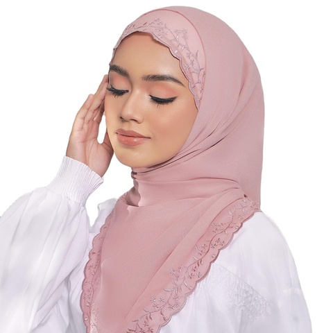 Custom מלזיה מכירה לוהטת פרימיום צדפות רקמת שיפון פשתן חיג 'אב צעיף