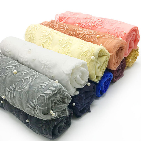 יוקרה תחרה צדפות רקמת שיפון פשתן חיג 'אב קלאסי אלגנטיות צעיף מוסלמי נשים בארה' ב